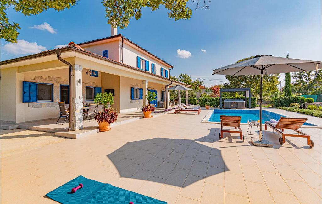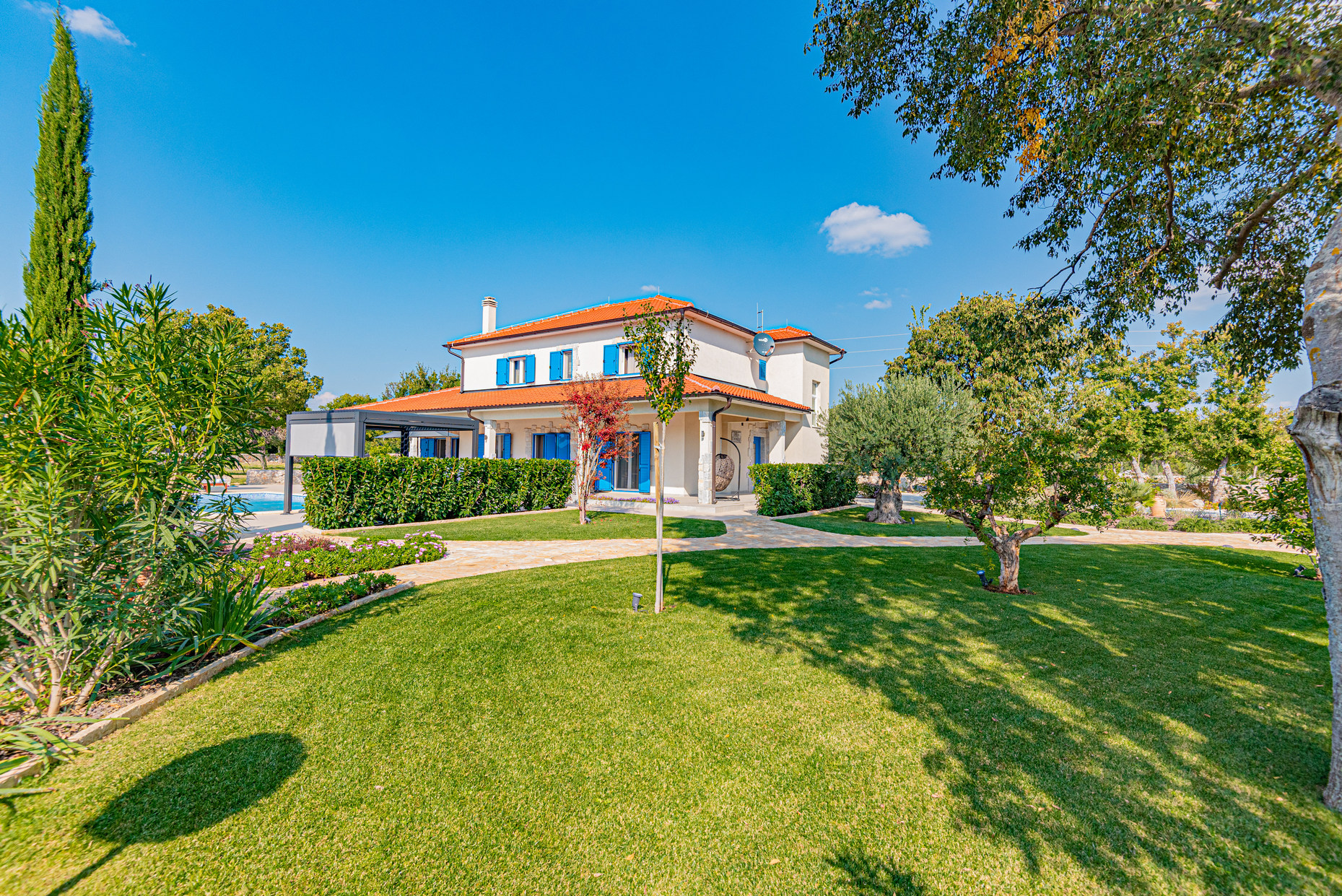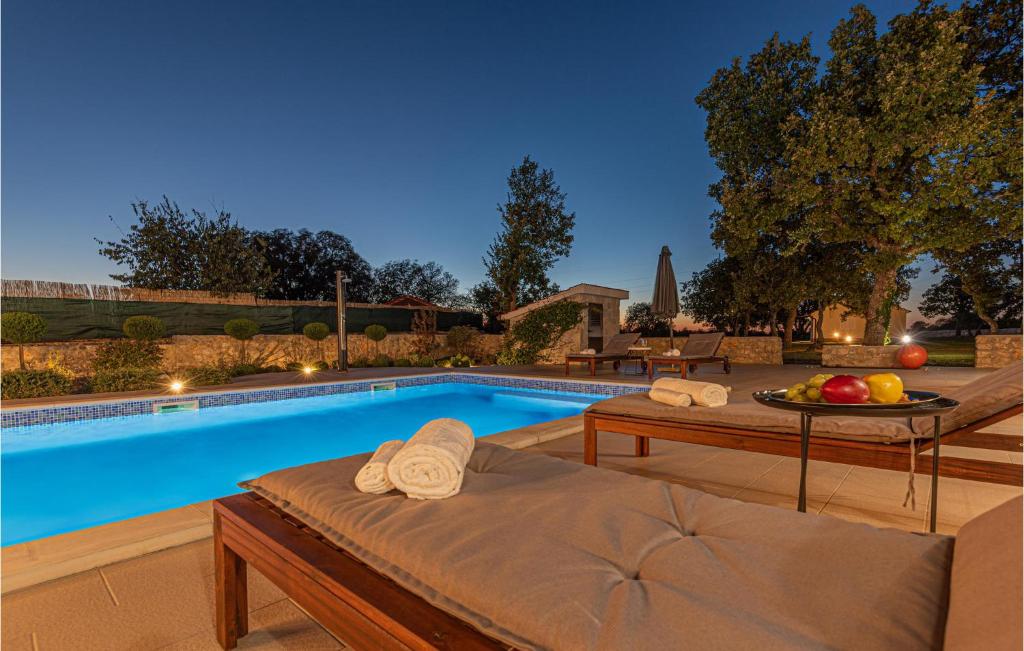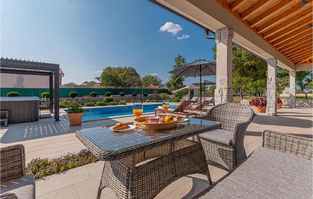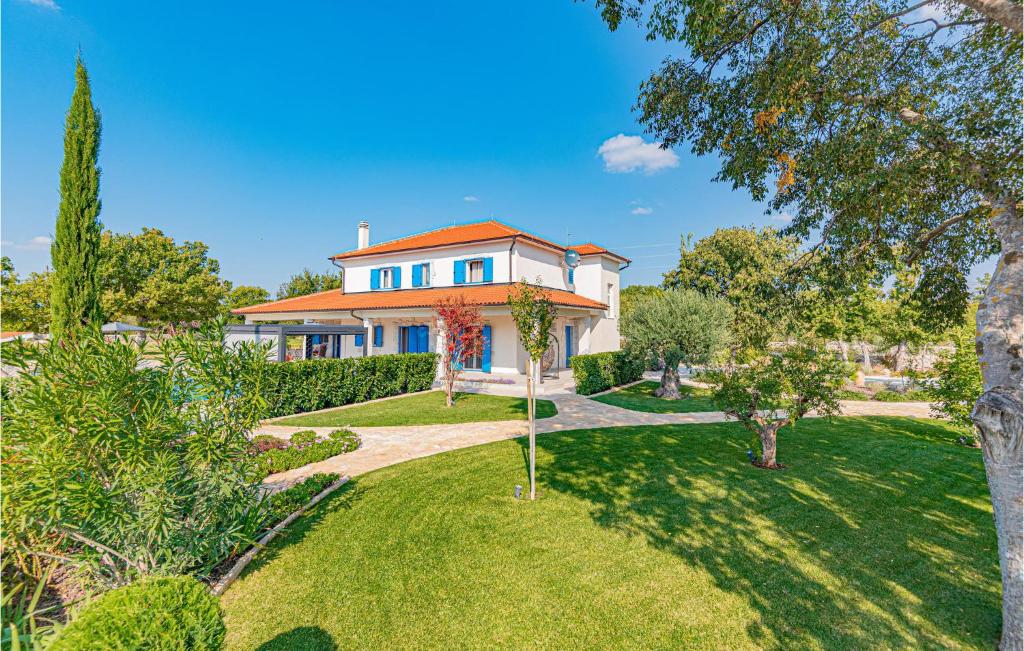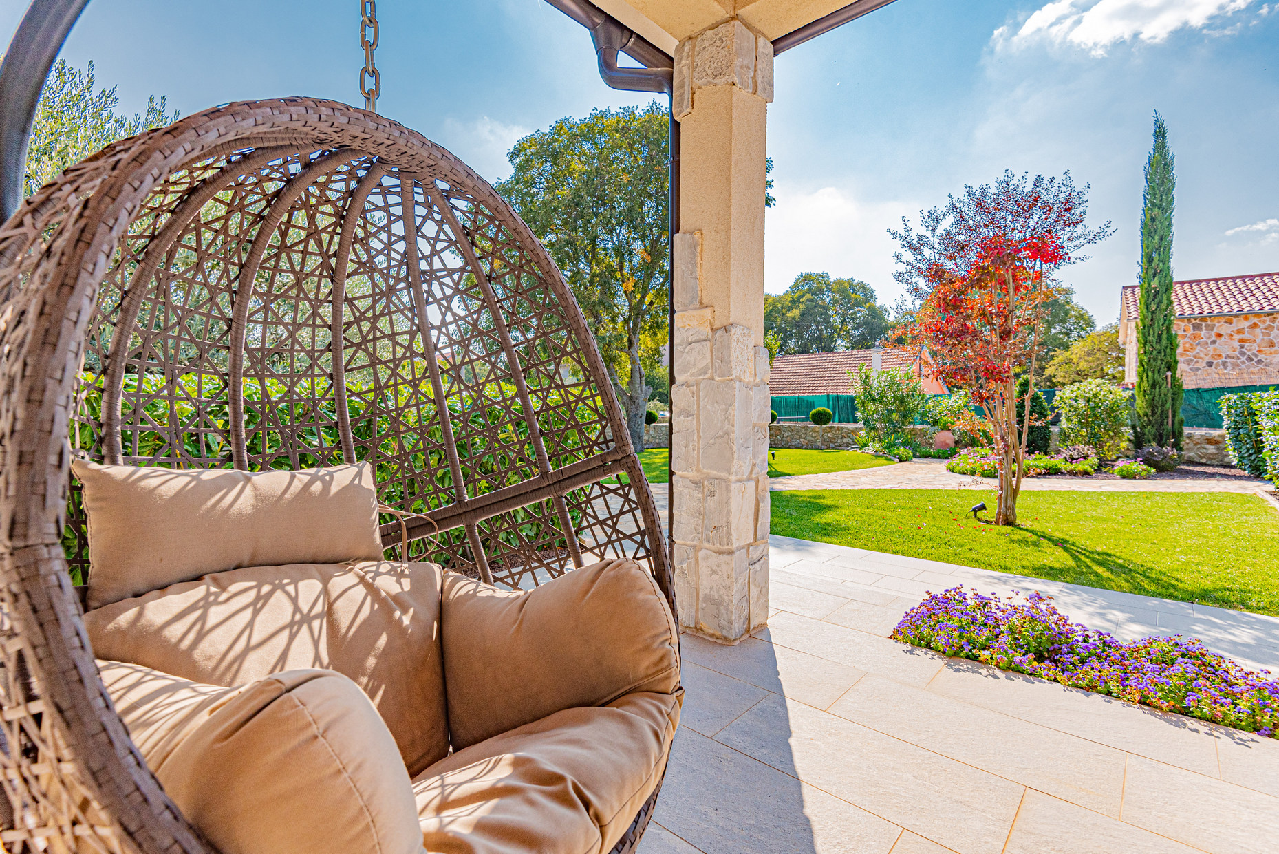 Der fantastische Außenbereich der Villa Romansa ist sowohl vom Wohnzimmer als auch von der Küche aus zu erreichen. Nicht nur mit seinem atemberaubenden Raum, sondern auch mit seinen Möglichkeiten verleiht dieser Außenbereich Ihrem Urlaub etwas Besonderes. Sie werden beeindruckt sein von dem mediterranen Garten, der sorgfältig gepflegten Grünfläche und dem Blumengarten, die mit ihren Farben und ihrer Dekoration verzaubern. Hier finden Sie Erholung für Körper und Seele, aber auch für den Gaumen, denn den Gästen steht ein Obstgarten zur Verfügung, dessen Früchte während der Saison frei serviert werden können. Die kleinen Gäste haben einen eigenen Spielplatz, der ihnen viel Spaß garantiert, und die erwachsenen Gäste werden zufrieden sein. Rund um den türkisblauen Pool in der Mitte der Terrasse befinden sich 9 Sonnenliegen und ein überdachter Whirlpool. Das garantiert Ihnen einen entspannten und angenehmen Urlaub. Darüber hinaus verfügt die Villa Romansa über moderne Gartenmöbel und einen Holz-/Holzkohlegrill. Mit ihren leuchtend blauen Fensterläden ist die Villa Romansa ein idealer Ort, um sich von der Hektik der Stadt und dem beschleunigten Lebensrhythmus zu erholen.