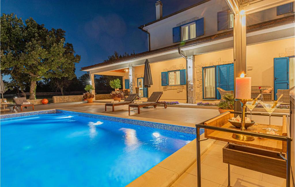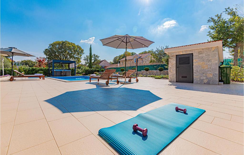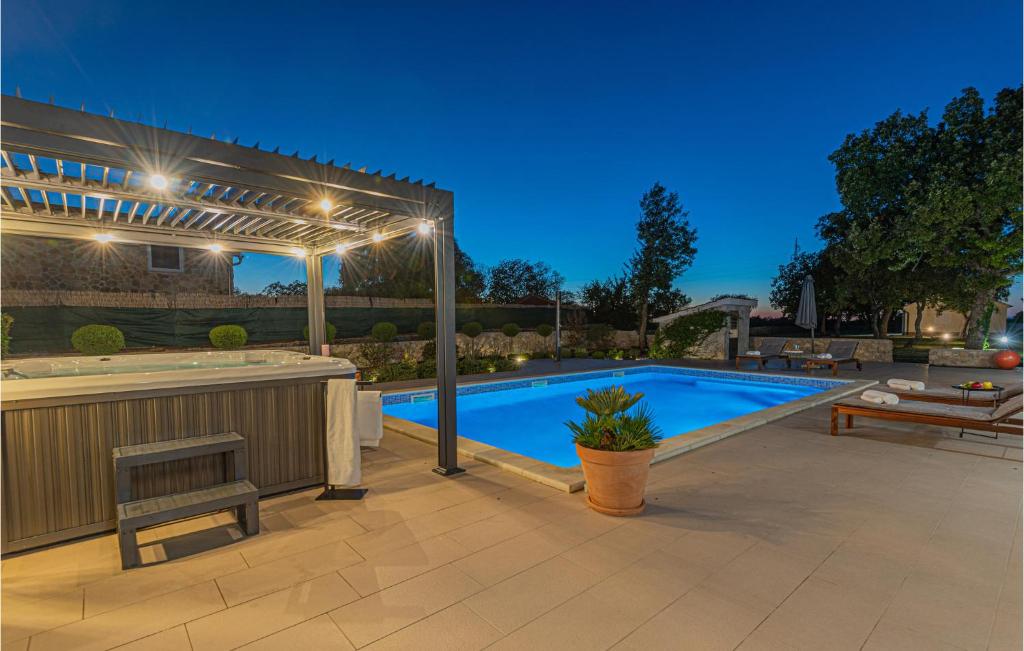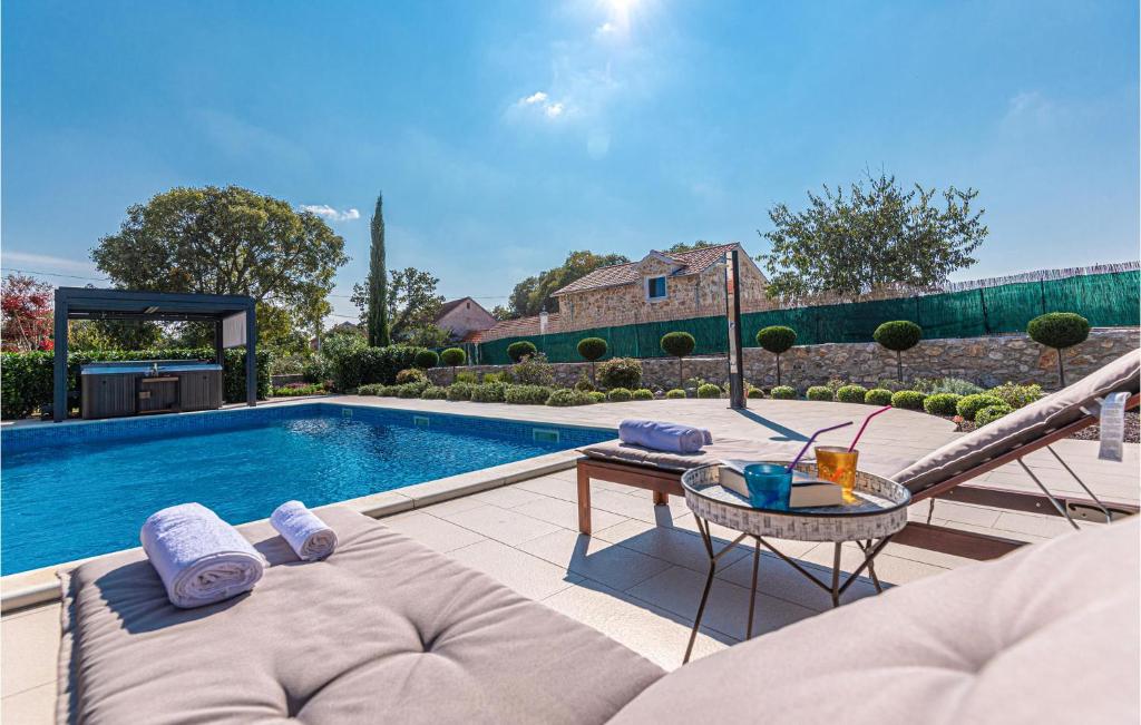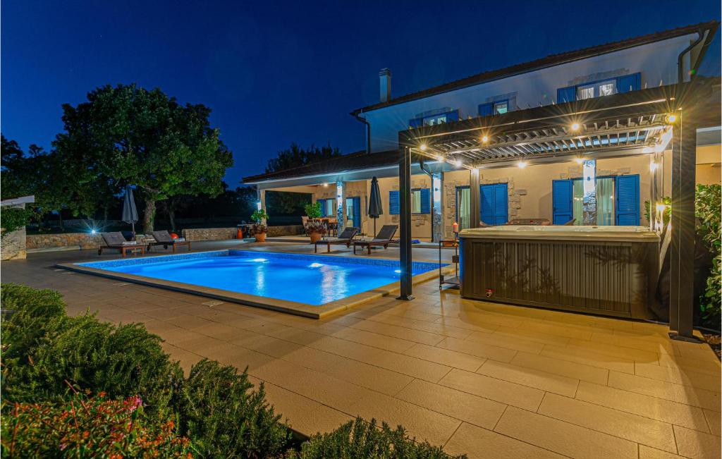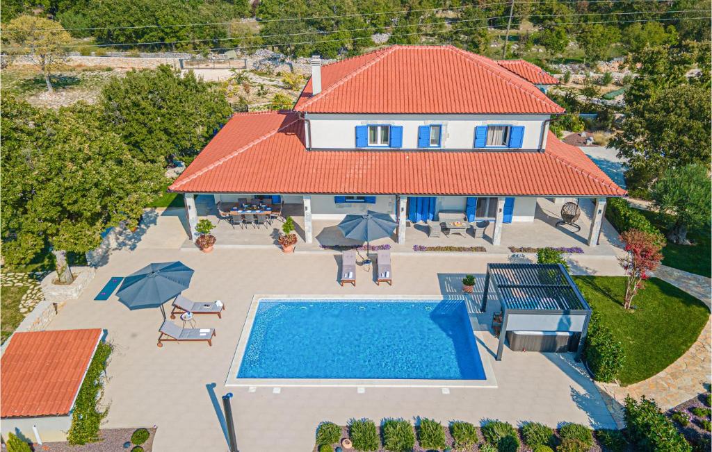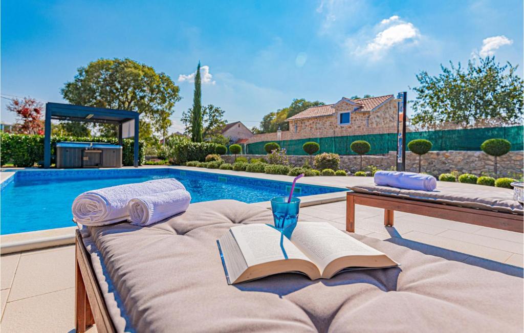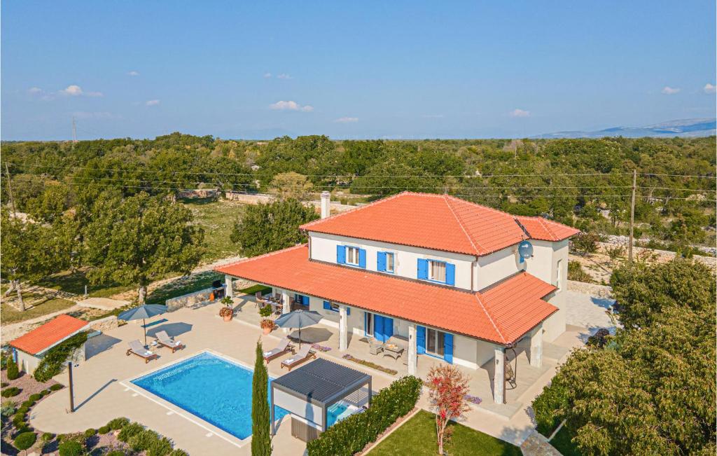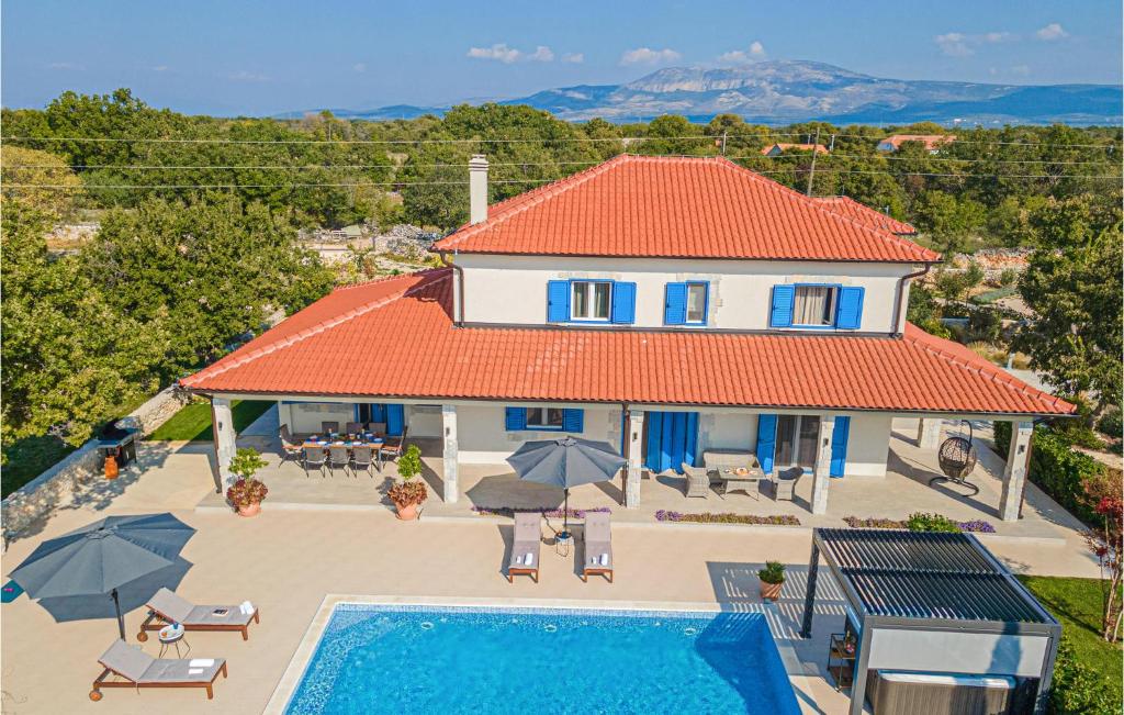 Mit einer großzügigen Innenfläche von 263 m2 bietet die Villa Romansa Unterkunft für 9 Gäste in 5 Zimmern. Die Gäste haben die Möglichkeit, sich in einem geräumigen Schlafzimmer mit einem Doppelbett im Erdgeschoss wie zu Hause zu fühlen. Neben dem Zimmer befindet sich ein Badezimmer, das wie alle anderen Badezimmer in der Villa Romansa über alle notwendigen Notwendigkeiten wie Handtücher und Haartrockner verfügt. Im Obergeschoss können sich die Gäste in einem geräumigen Zimmer mit einem Doppelbett (falls erforderlich und einem Babybett) mit Blick auf den Berg Promina wohlfühlen. Das Zimmer verfügt über ein eigenes Bad. Das zweite geräumige Schlafzimmer mit einem Doppelbett verfügt ebenfalls über ein eigenes Bad und zwei Sessel, in denen Sie Ihren Morgenkaffee genießen können. Das dritte charmante Zimmer im Obergeschoss verfügt über ein eigenes Bad und zwei Einzelbetten, in denen die PlayStation 4-Konsole für zusätzliche Unterhaltung sorgt. Das vierte Zimmer verfügt über ein Einzelbett und wie alle anderen Zimmer in der Villa Romansa über einen Fernseher. Das gemütliche und geräumige Wohnzimmer im Erdgeschoss der Villa Romansa bietet seinen Gästen einen Smart-TV. Dies macht es zu einem idealen Ort zum bequemen Sitzen und Entspannen, und der Kamin ermöglicht es Ihnen, ihn auch in den Winterferien zu genießen. Das Wohnzimmer ist mit einer offenen Küche und einem Esstisch für 8 Personen (bei Bedarf und einem Stuhl für die Verpflegung der kleinen Gäste) verbunden. Die Küche ist mit allen notwendigen Gerichten und Geräten ausgestattet, was das Kochen mit Familie und Freunden zu einem unterhaltsamen Urlaubserlebnis macht. Als Bonus haben Sie die Möglichkeit, sich in einem separaten Sportbereich und in der Sauna fit zu halten oder Zeit mit Ihrer Gruppe bei einer Partie Darts zu verbringen. Ein zusätzlicher großer Kühlschrank, der sich im Sportbereich befindet, macht es einfach, die Getränke zu kühlen, ohne in die Küche zu gehen.